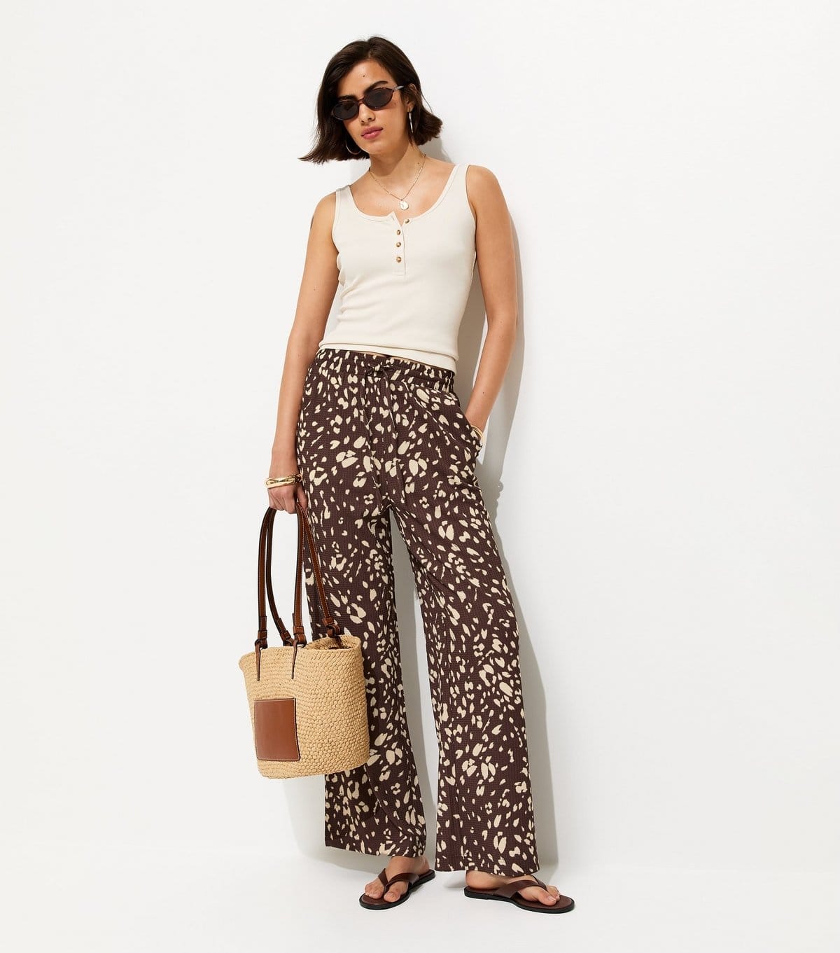 The New Look Brown Animal Print Crinkled Wide Leg Trousers is available in sizes 10, 12, 14, 16, 18, 20, 22, 6, 8.