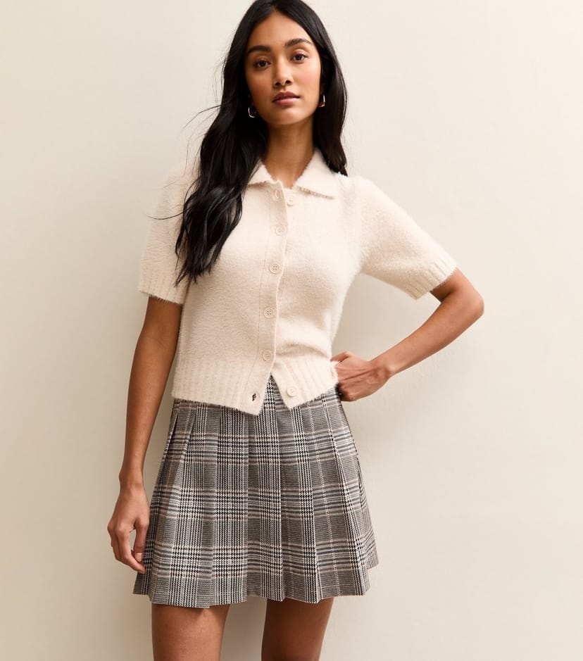 The New Look Light Grey Checked Pleated Mini Skirt is ideal for casual, work, evening.
