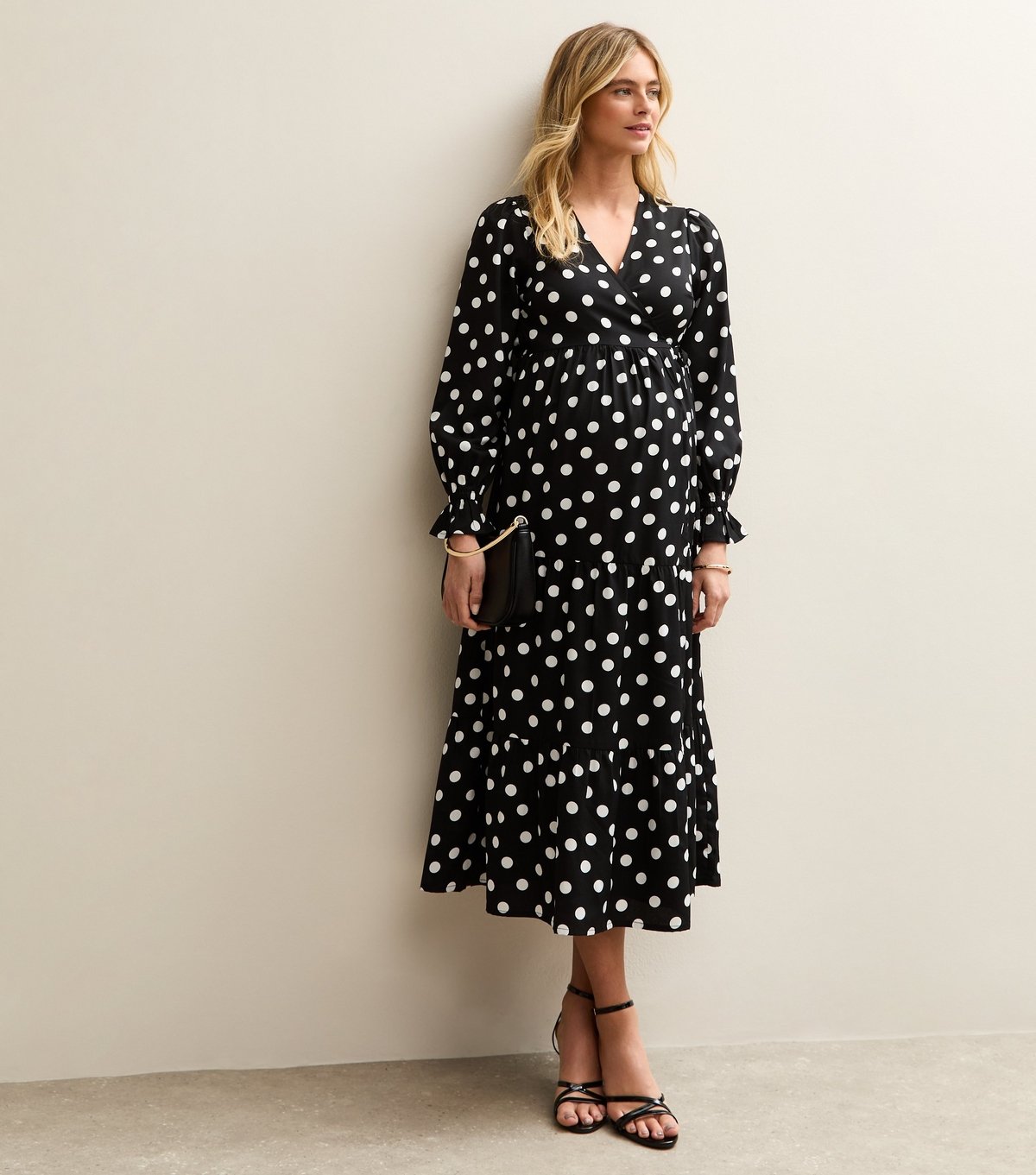 The New Look Black Polka Dot Midi Wrap Dress is ideal for casual, everyday, maternity.