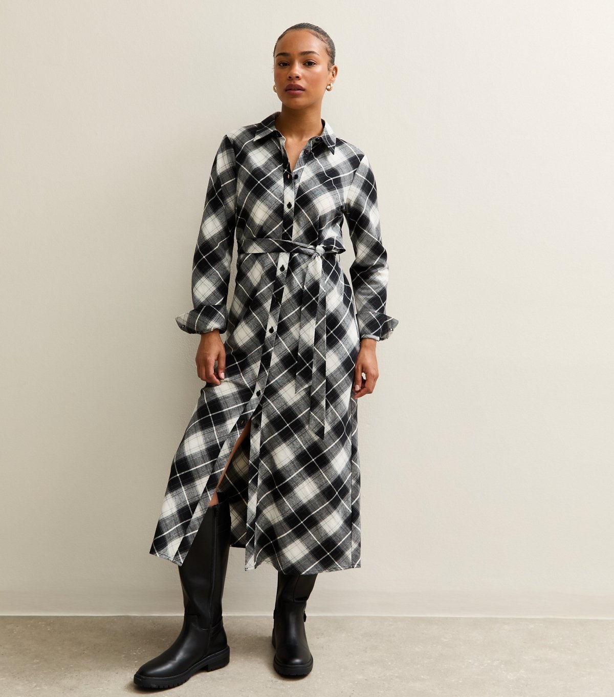 The New Look Black Checked Midi Shirt Dress is made from woven.
