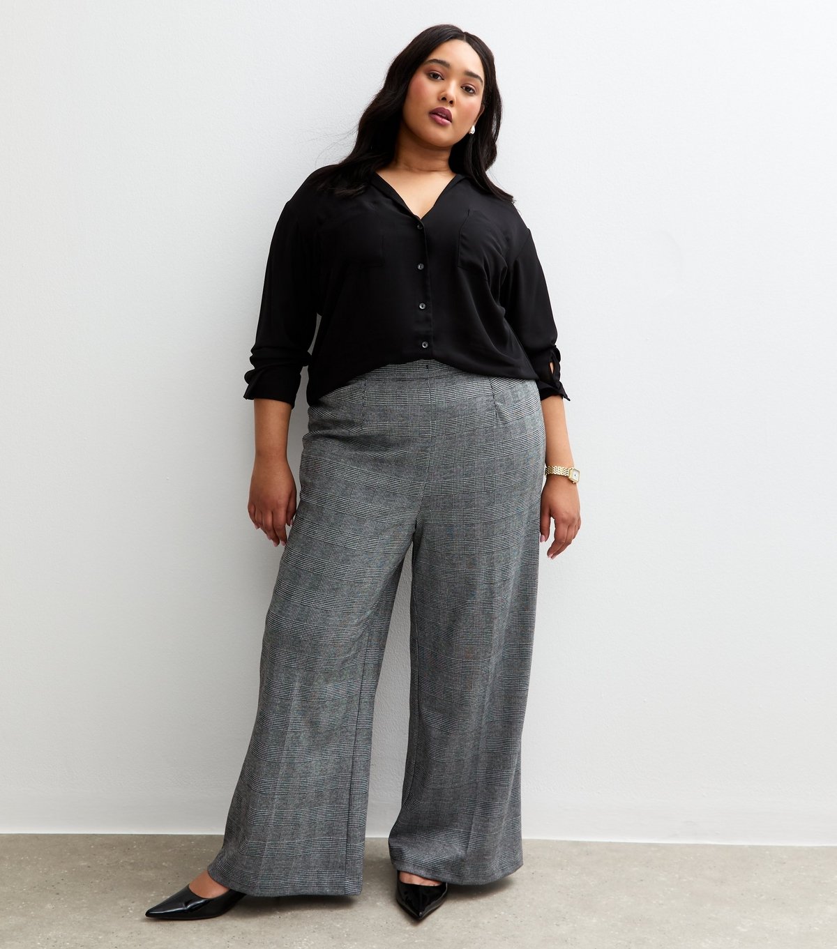 The New Look Black Check Plus Size Wide Leg Trousers is available in sizes 18, 20, 22, 24, 26.