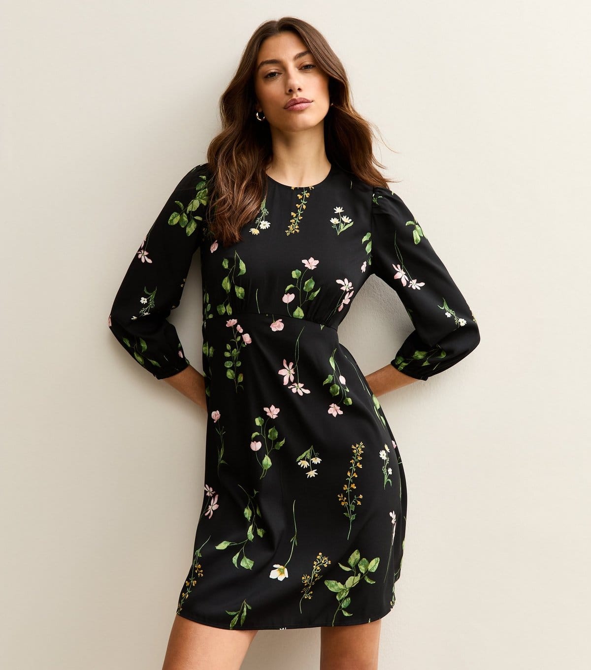 The New Look Black Floral Mini Dress is ideal for casual, daytime.