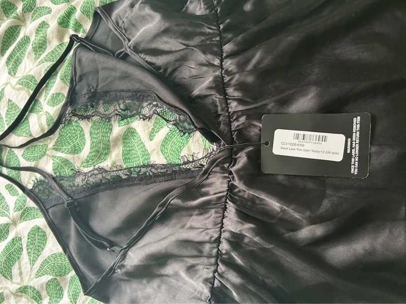The New Look Satin Lingerie Romper in Black is available in sizes M.