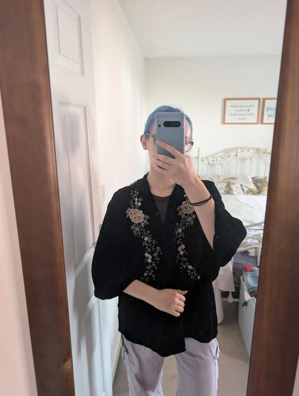 The New Look Black Velvet Embroidered Cardigan is available in sizes S.
