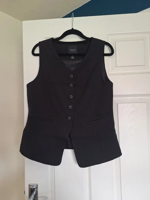 The New Look Black Button Front Waistcoat in Petite Size is available in sizes M.