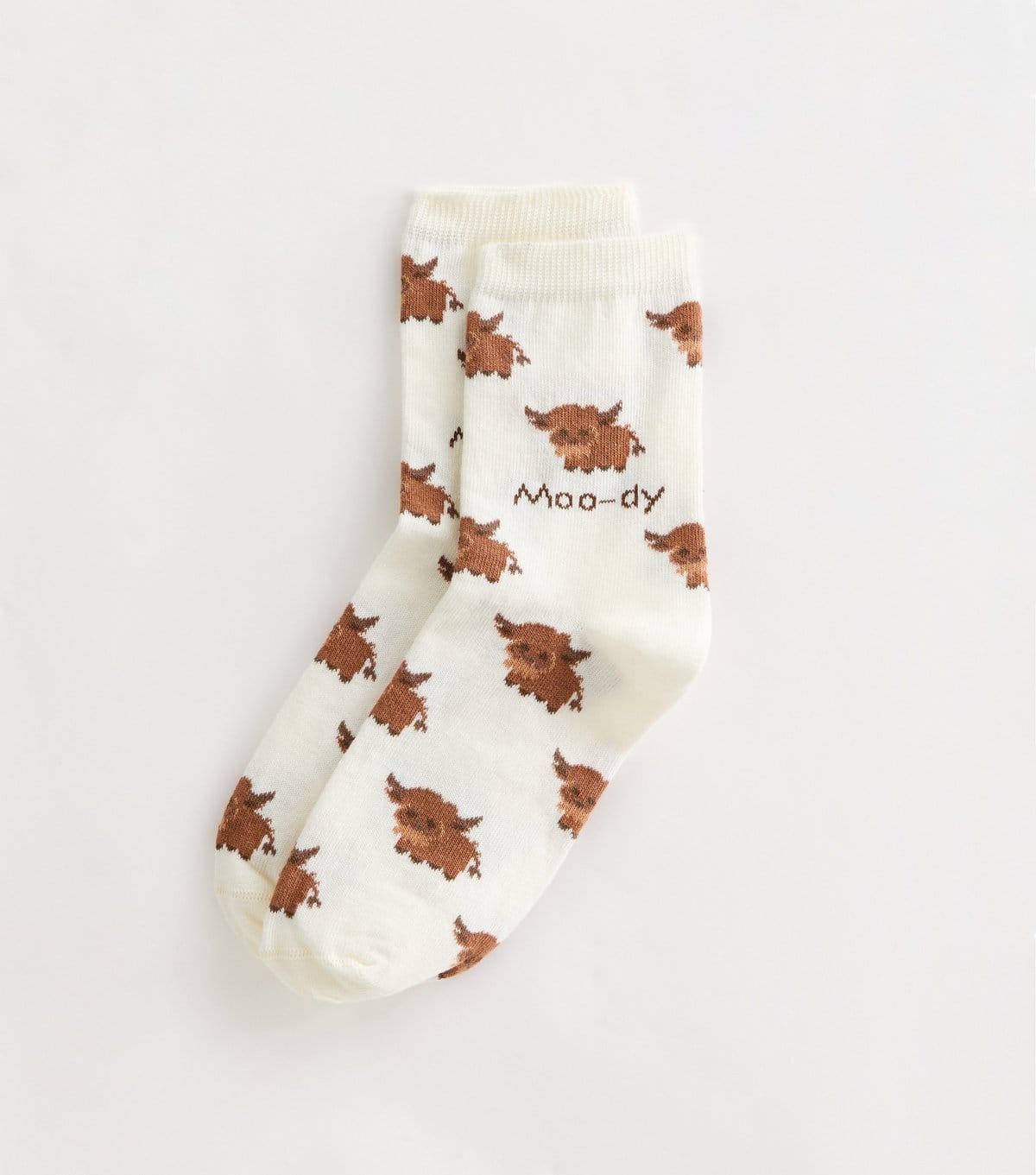 The New Look White Cow Illustration Socks is ideal for casual, everyday.