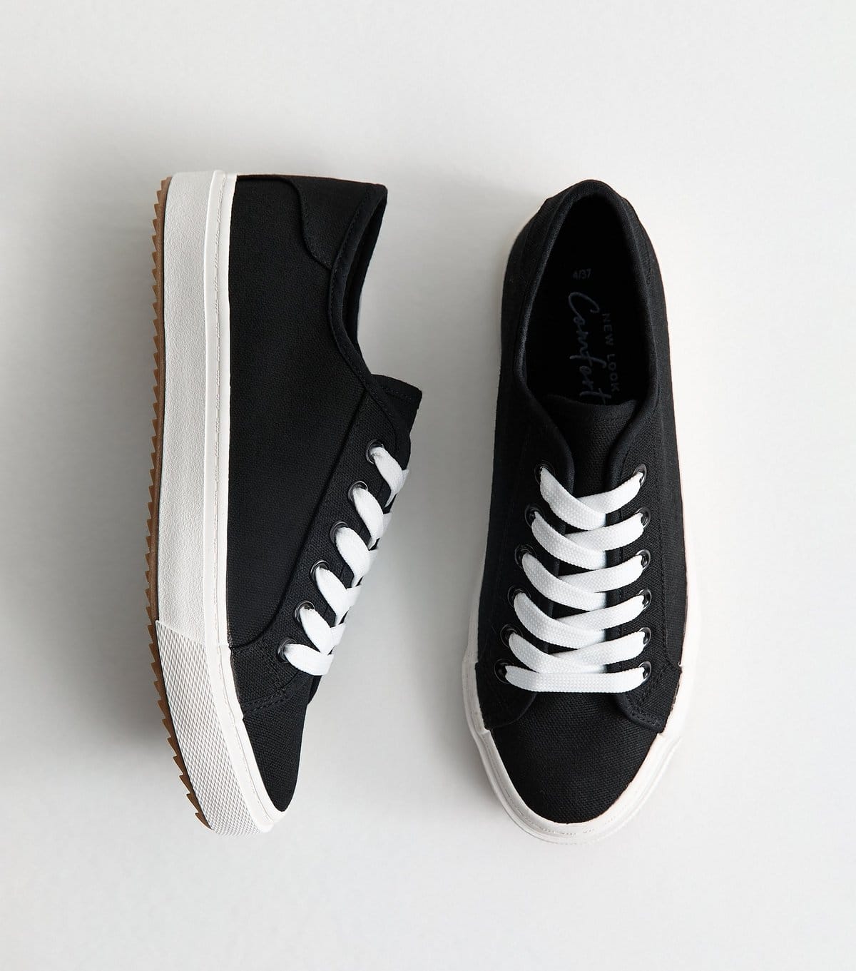 The New Look Black Canvas Lace-Up Trainers is available in sizes 3, 4, 5, 6, 7, 8.