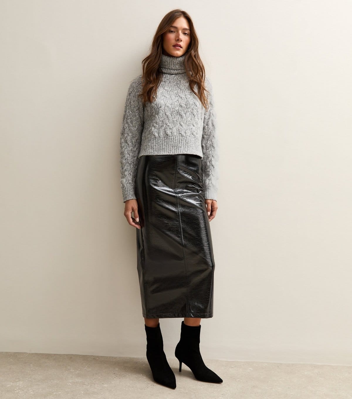 “Pair with a grey knit jumper and black ankle boots for a sophisticated office look.”