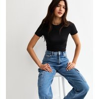 The New Look Black Jersey Cropped T-Shirt is made from jersey.