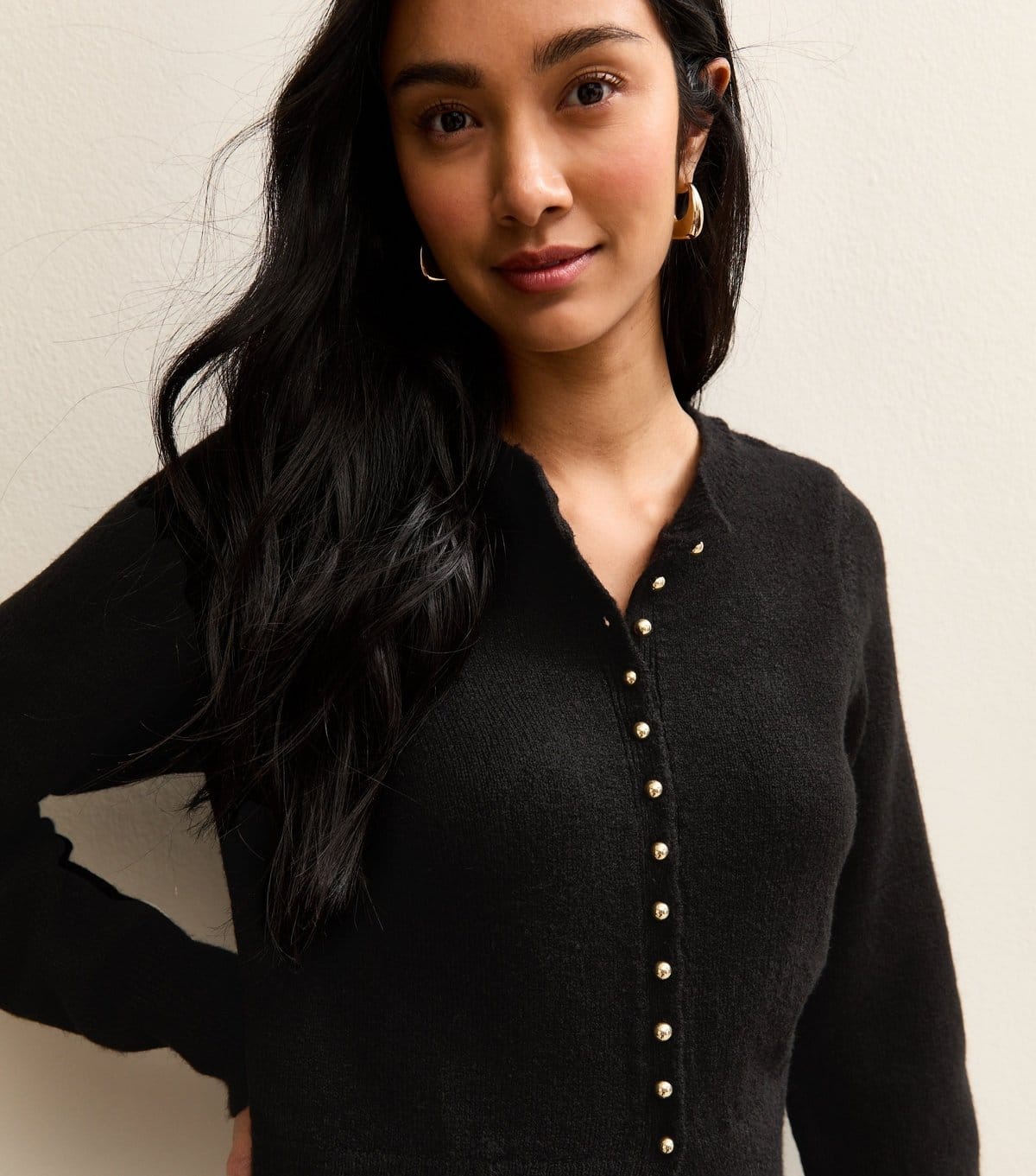 The New Look Black Dome Button Crew Neck Cardigan is made from knit.