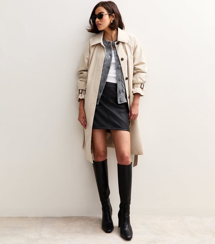 See all outfit ideasThis sleek black faux leather mini skirt from New Look features an A-line silhouette with dart seams for subtle structure. Ideal for a night out, this versatile piece adds a touch of edginess to any outfit.