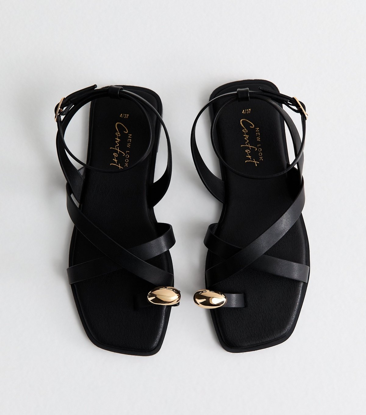 The New Look Black Faux Leather Strappy Sandals is available in sizes 3, 4, 5, 6, 7, 8, 9.
