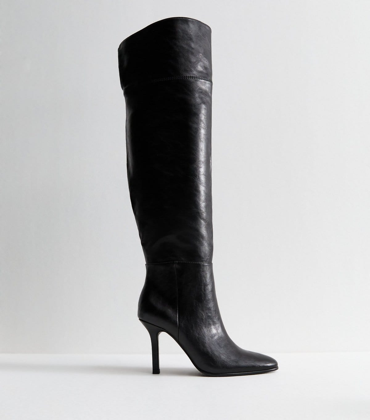 The New Look Black Faux Leather Over-The-Knee Stiletto Boots is made from faux leather.