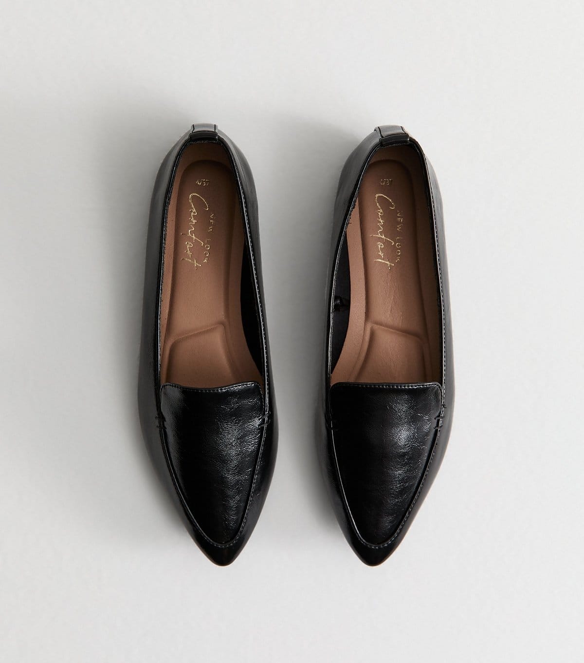 The New Look Black Faux Leather Pointed Toe Loafers is available in sizes 3, 4, 5, 6, 7, 8, 9.