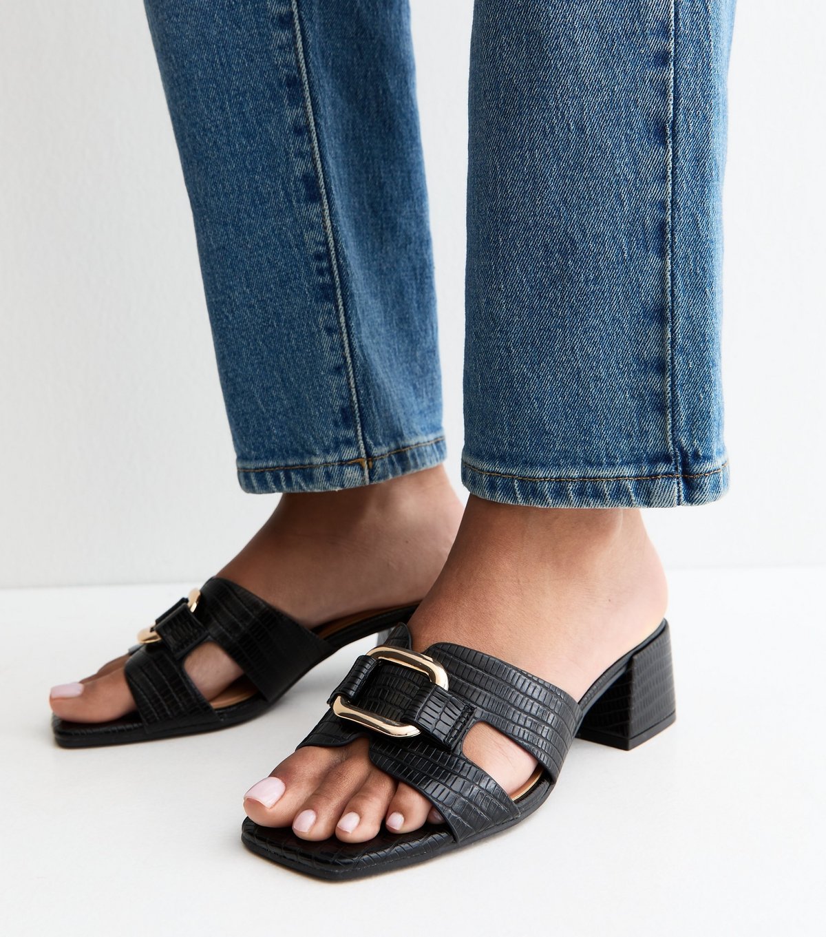 The New Look Black Faux Leather Block Heel Mules is available in sizes 3, 4, 5, 6, 7, 8, 9.