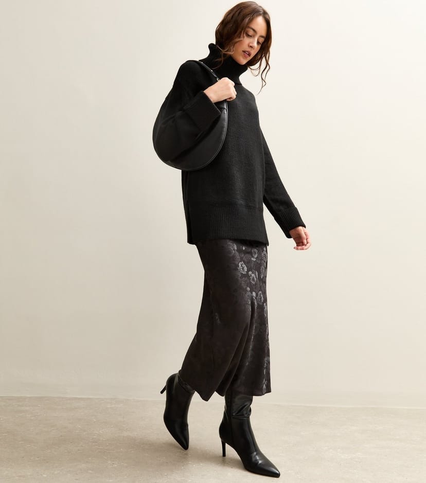 The New Look Black Floral Maxi Slip Skirt is made from jacquard.