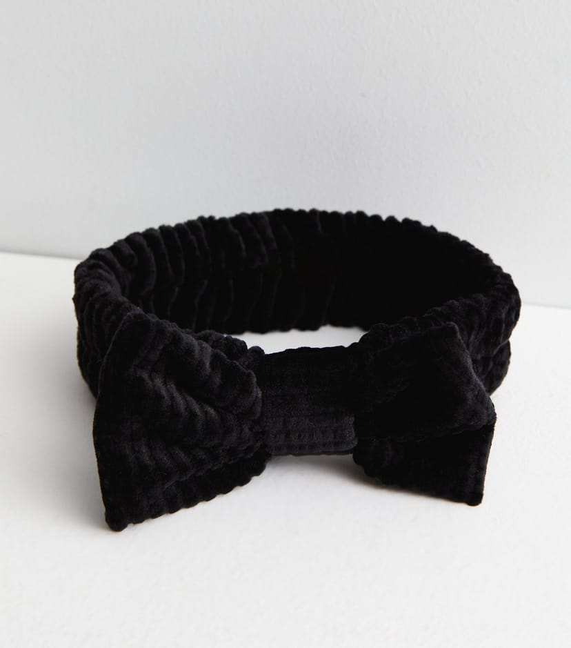 The New Look Black Fluffy Bow Beauty Band is made from velvet.