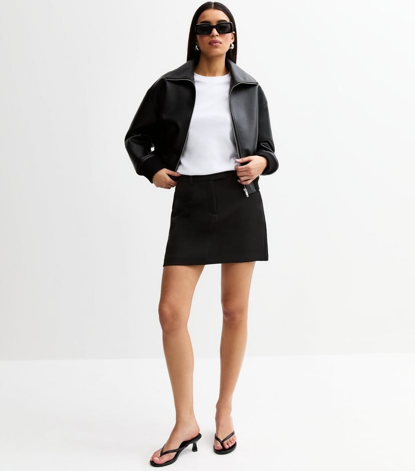 This black woven mini skirt from New Look features a high-waisted profile and lightly structured design with back darts. Ideal for transitioning from office days to evening outings.