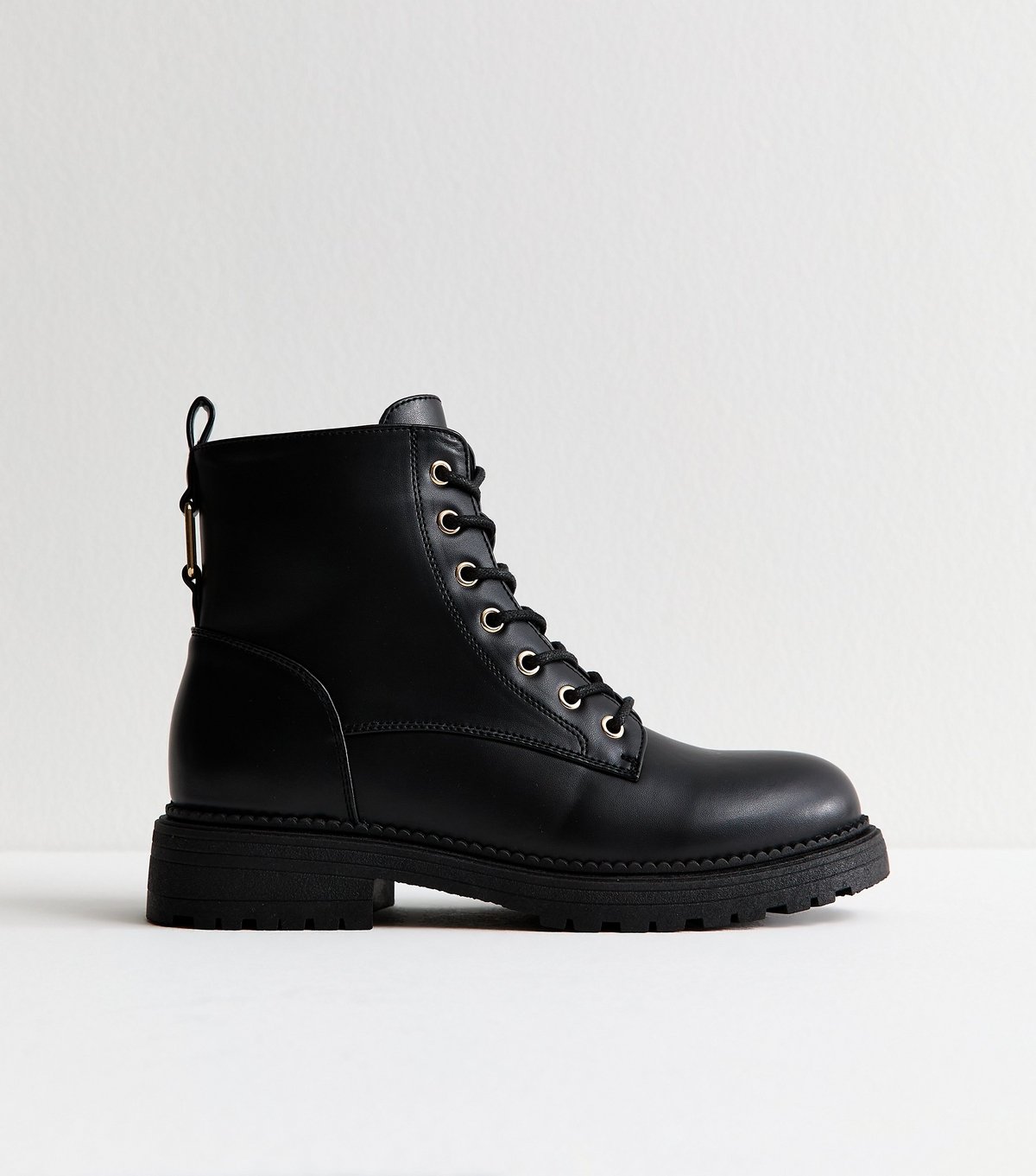 The New Look Black Leather-Look Lace-Up Ankle Boots is available in sizes 7, 8, 9.