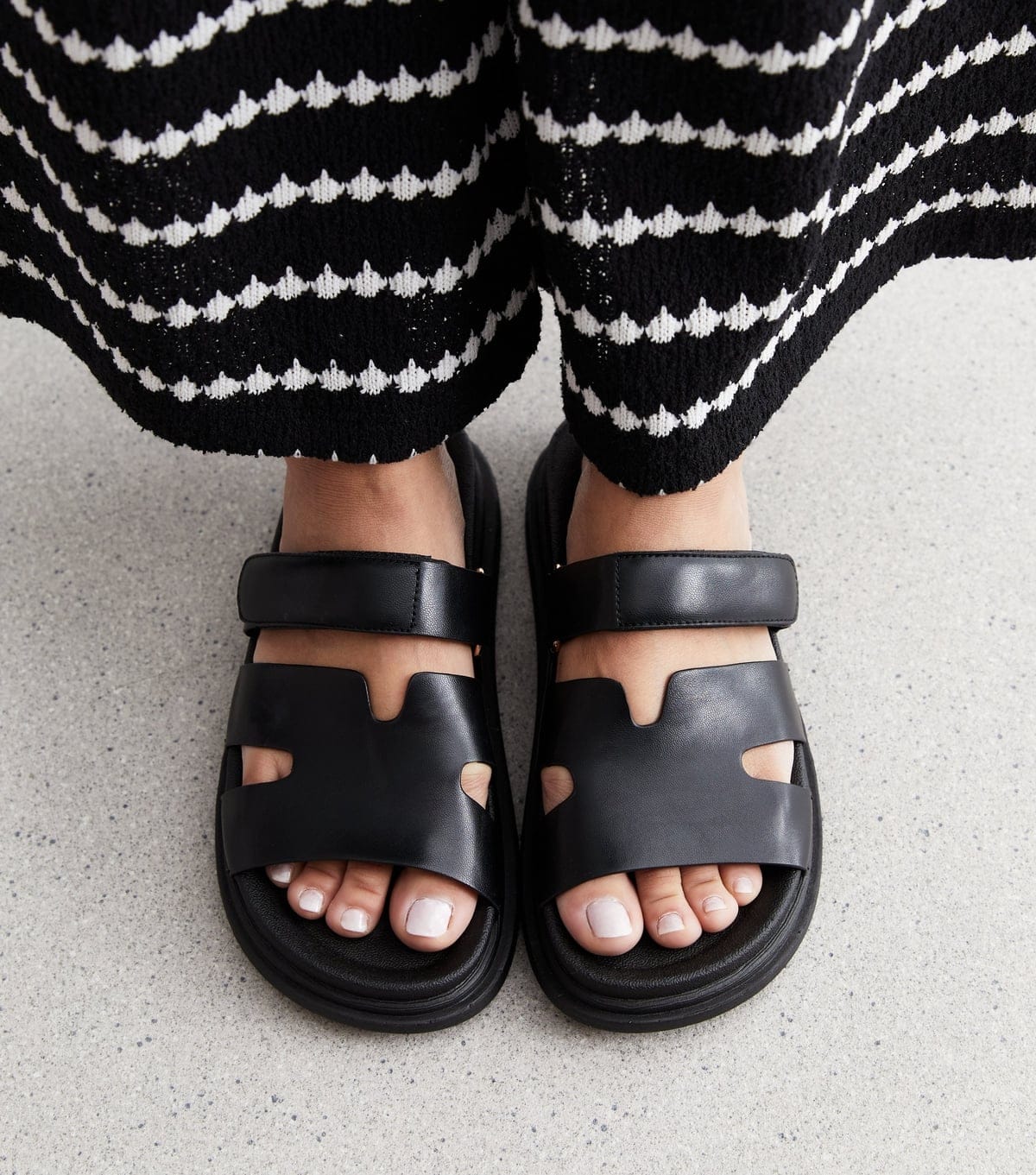 The New Look Black Leather-Look Chunky Sliders is ideal for casual, summer events.