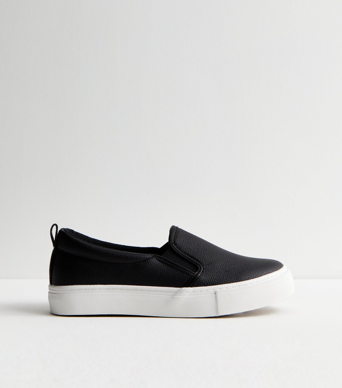 The New Look Black Leather-Look Slip-On Trainers is available in sizes 2.