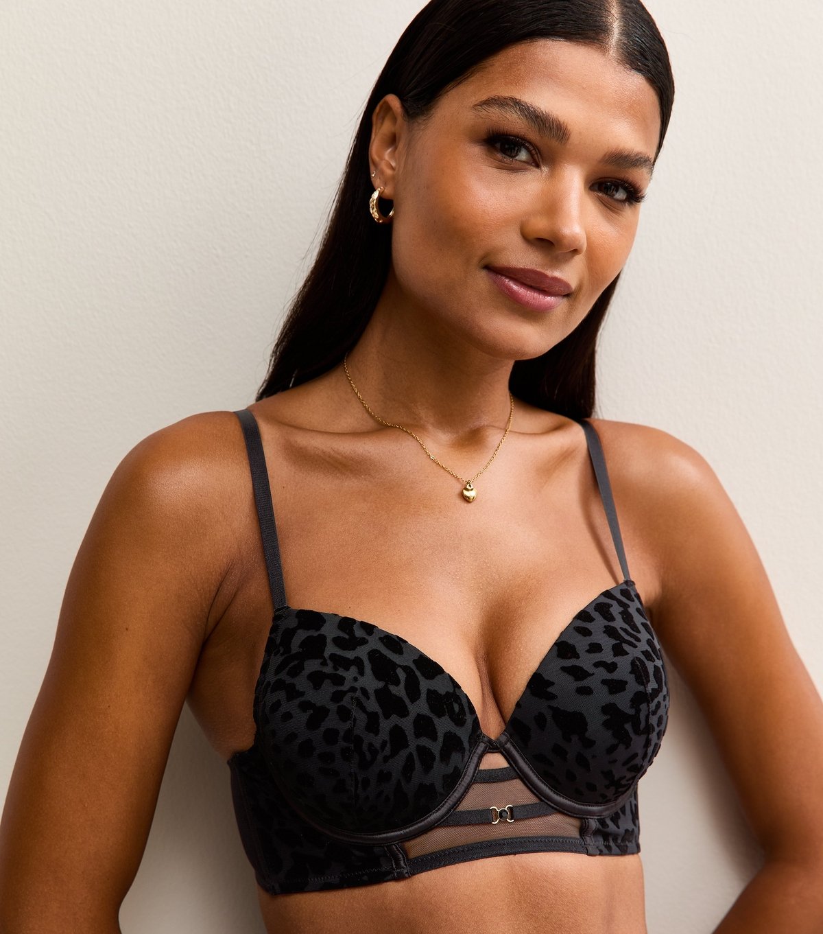 The New Look Black Leopard Flock T-Shirt Bra is ideal for evening, casual, date-night.