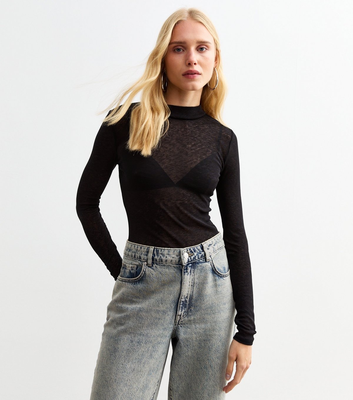 The New Look Black Mesh High Neck Long Sleeve Top is ideal for casual, smart-casual, evening.