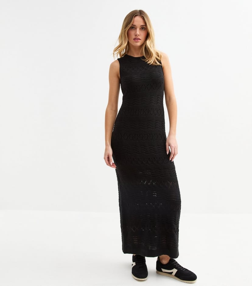 The New Look Black Open Knit Maxi Dress is available in sizes 10.