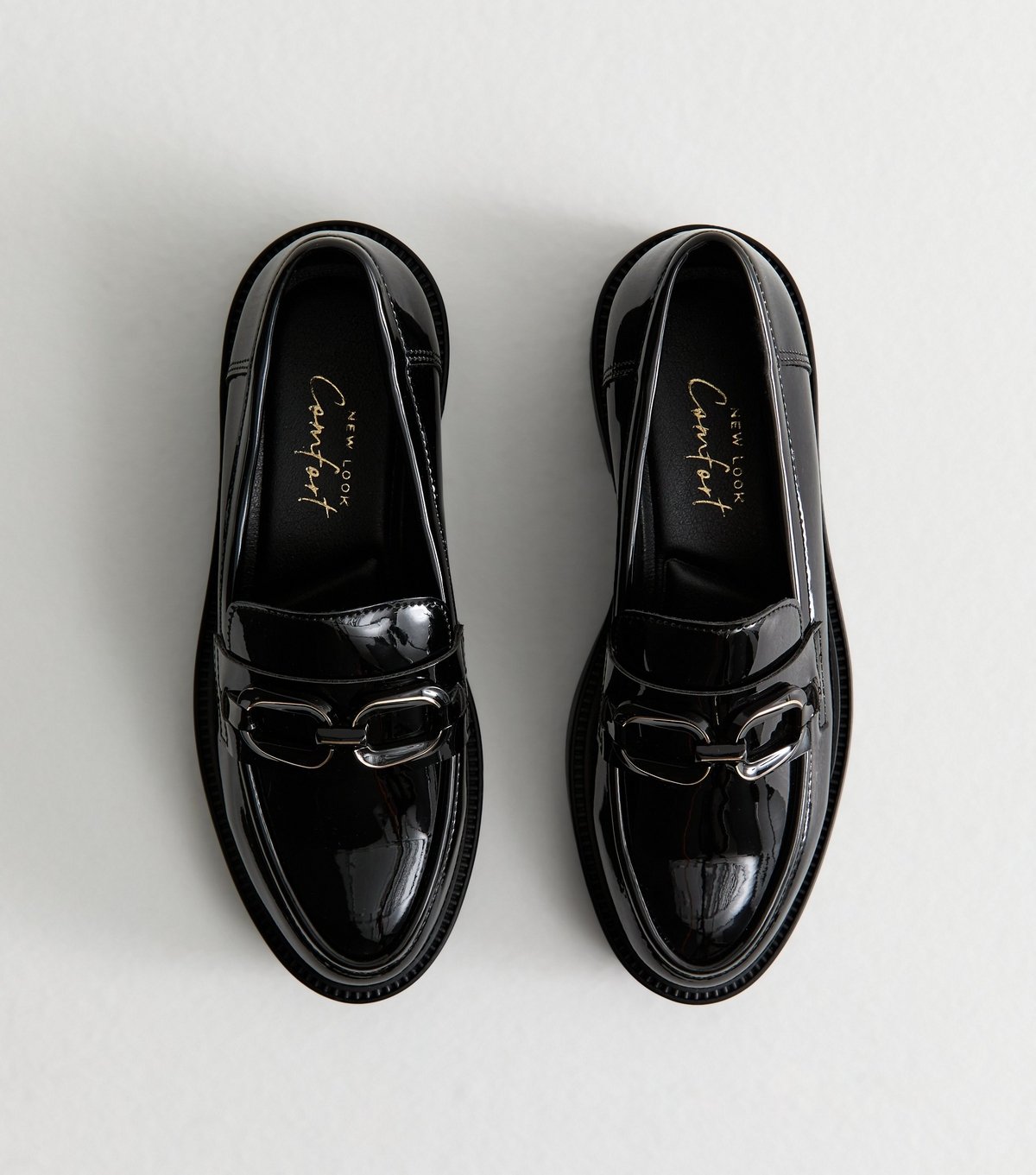 The New Look Black Patent Faux Leather Penny Loafers is available in sizes 3, 4, 5, 6, 7, 8.