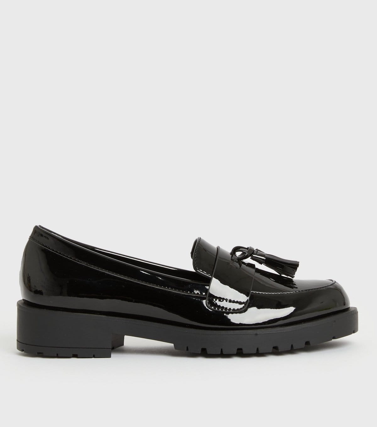 The New Look Black Patent Tassel Chunky Loafers is available in sizes 4, 7, 8, 9.