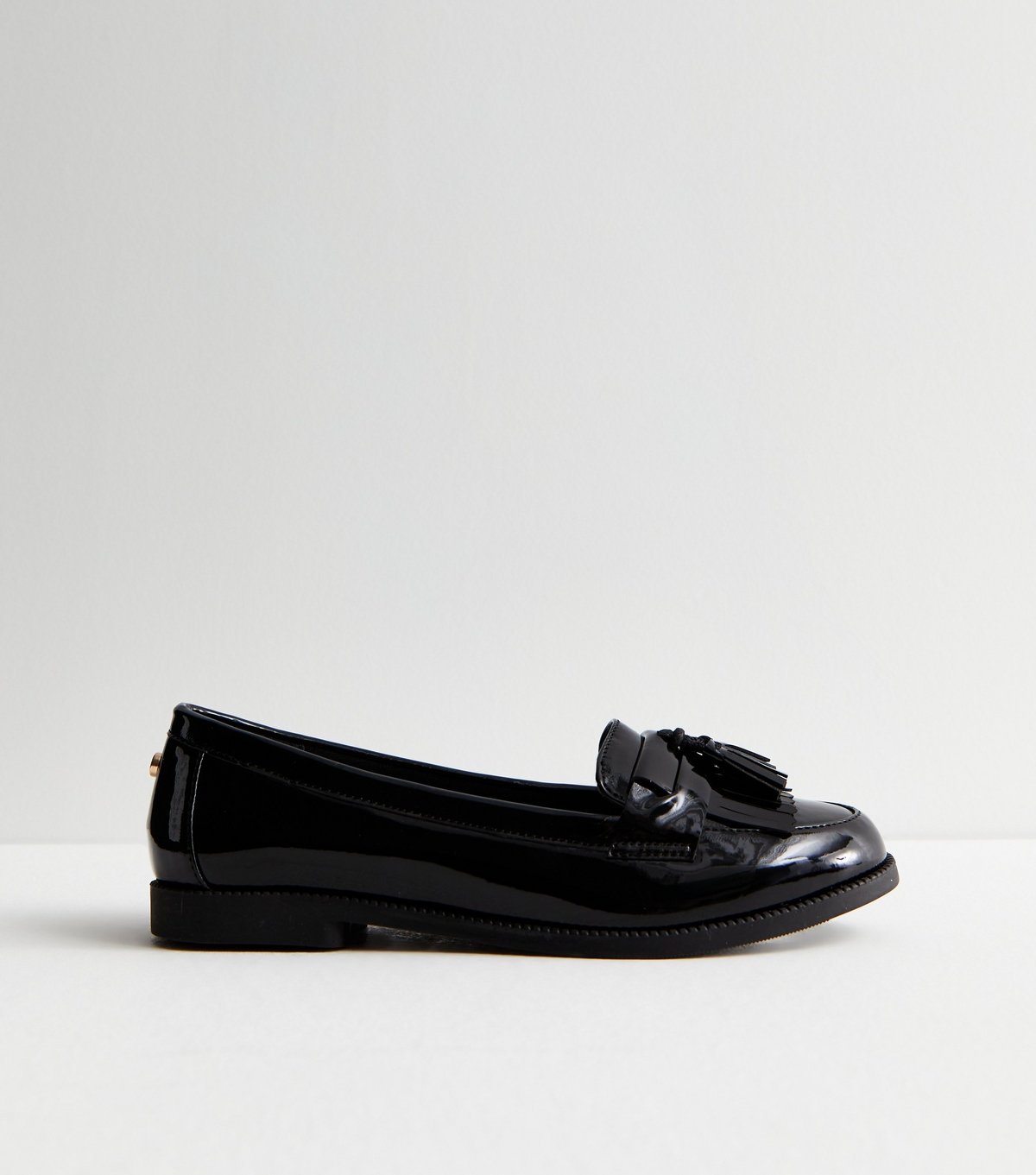 The New Look Black Patent Tassel Trim Loafers is ideal for school, college, work.