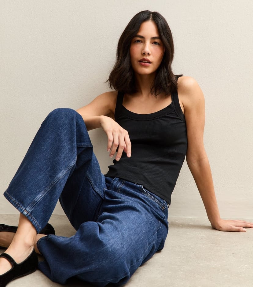 Sleek black ribbed scoop neck cami from New Look. Crafted from stretchy rib jersey, this fitted cropped top is a versatile wardrobe staple. Ideal for layering or wearing solo, it's perfect for casual outings.
