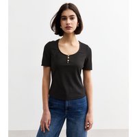 The New Look Black Ribbed Scoop Neck Top is made from jersey.