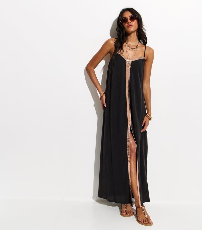 The New Look Black Sequin Trim Maxi Dress is ideal for beach, evening, party.