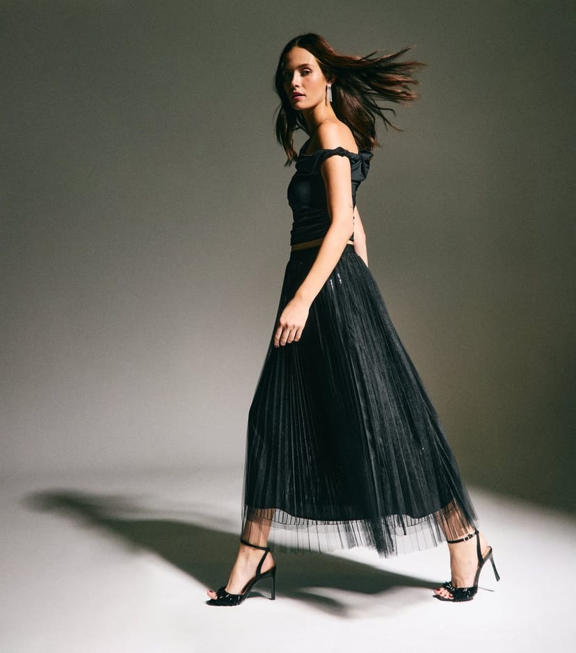 The New Look Black Sequin Tulle Midi Skirt is ideal for evening, special occasion, party.