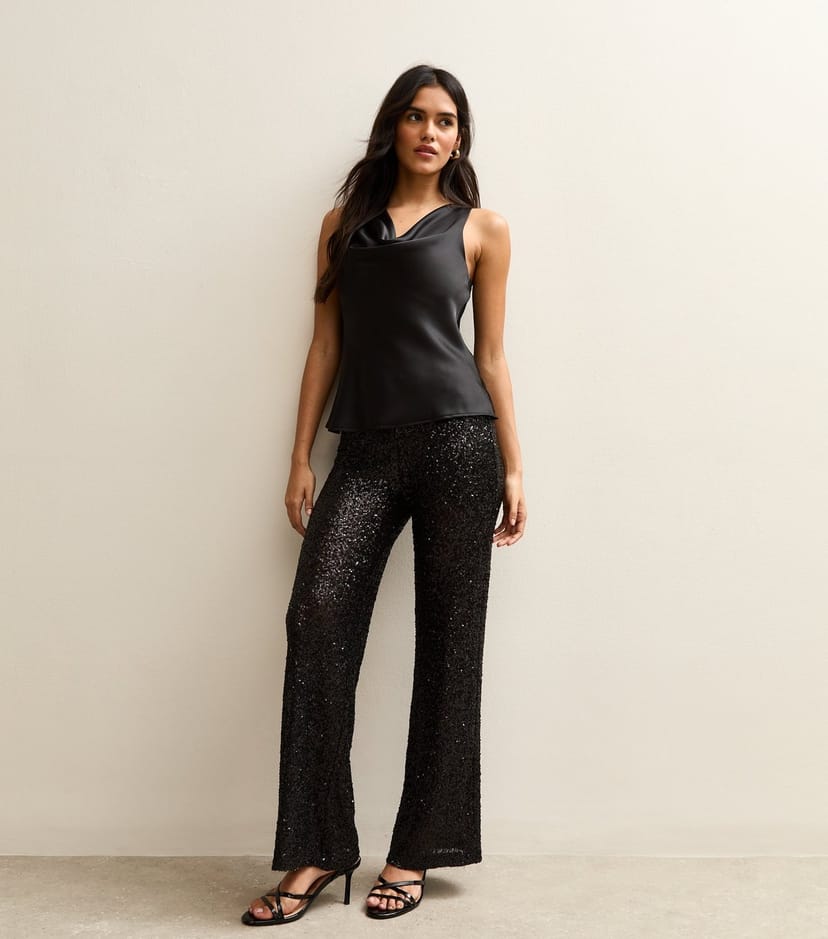 The New Look Black Sequin Wide Leg Trousers is ideal for party, evening, date-night.