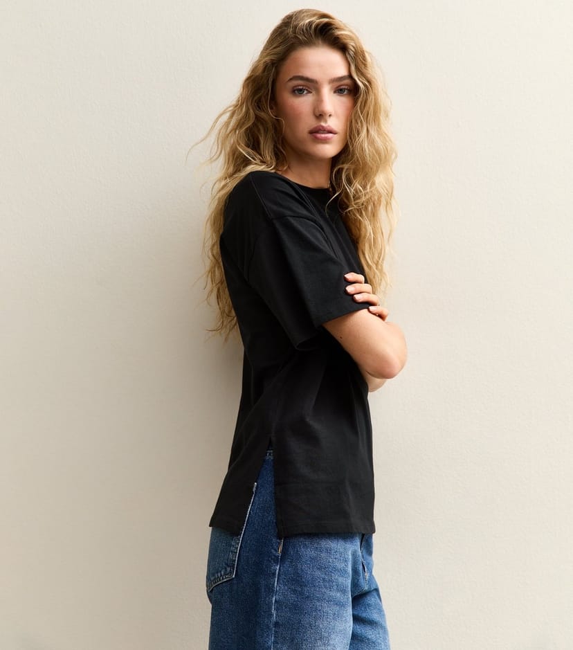 The New Look Black Side Split T-Shirt is ideal for casual, everyday.