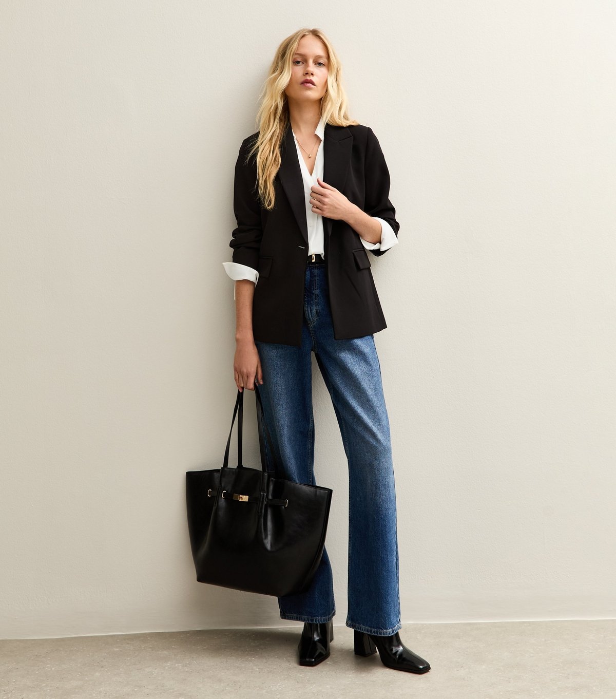 This black woven blazer from New Look is a versatile addition to your wardrobe. It features a softly structured silhouette and a regular fit, perfect for both casual and formal occasions. Ideal for pairing with denim or officewear.
