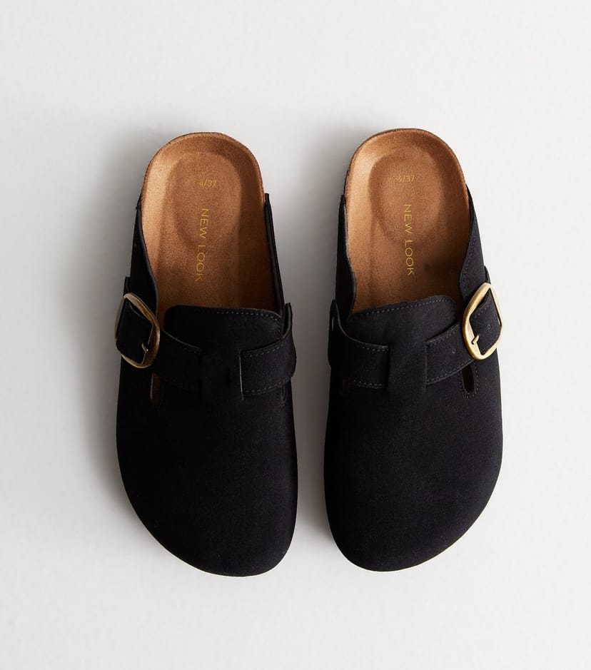 View New Look UK's returns policyStylish and fuss-free, these black suedette mules from New Look feature a rounded toe, buckle detail, and a cleated sole for added comfort. Perfect for casual wear.