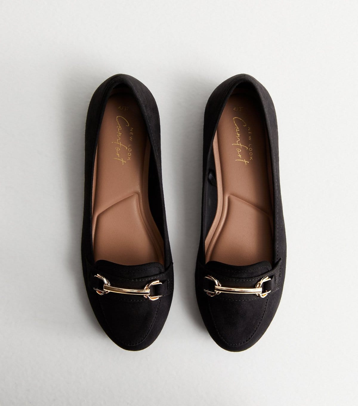 The New Look Black Suedette Loafers is available in sizes 9.