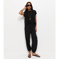 The New Look Black Tapered Cuff Drawstring Trousers is made from woven.