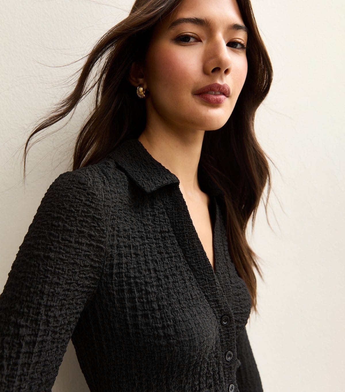 Back to New Look Black Textured Jersey Collared Long Sleeve Top →