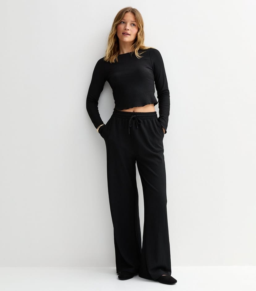 The New Look Black Textured Wide Leg Trousers is ideal for casual, everyday.