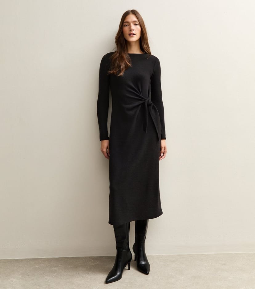 The New Look Black Rib Knit Midi Dress is made from rib knit.