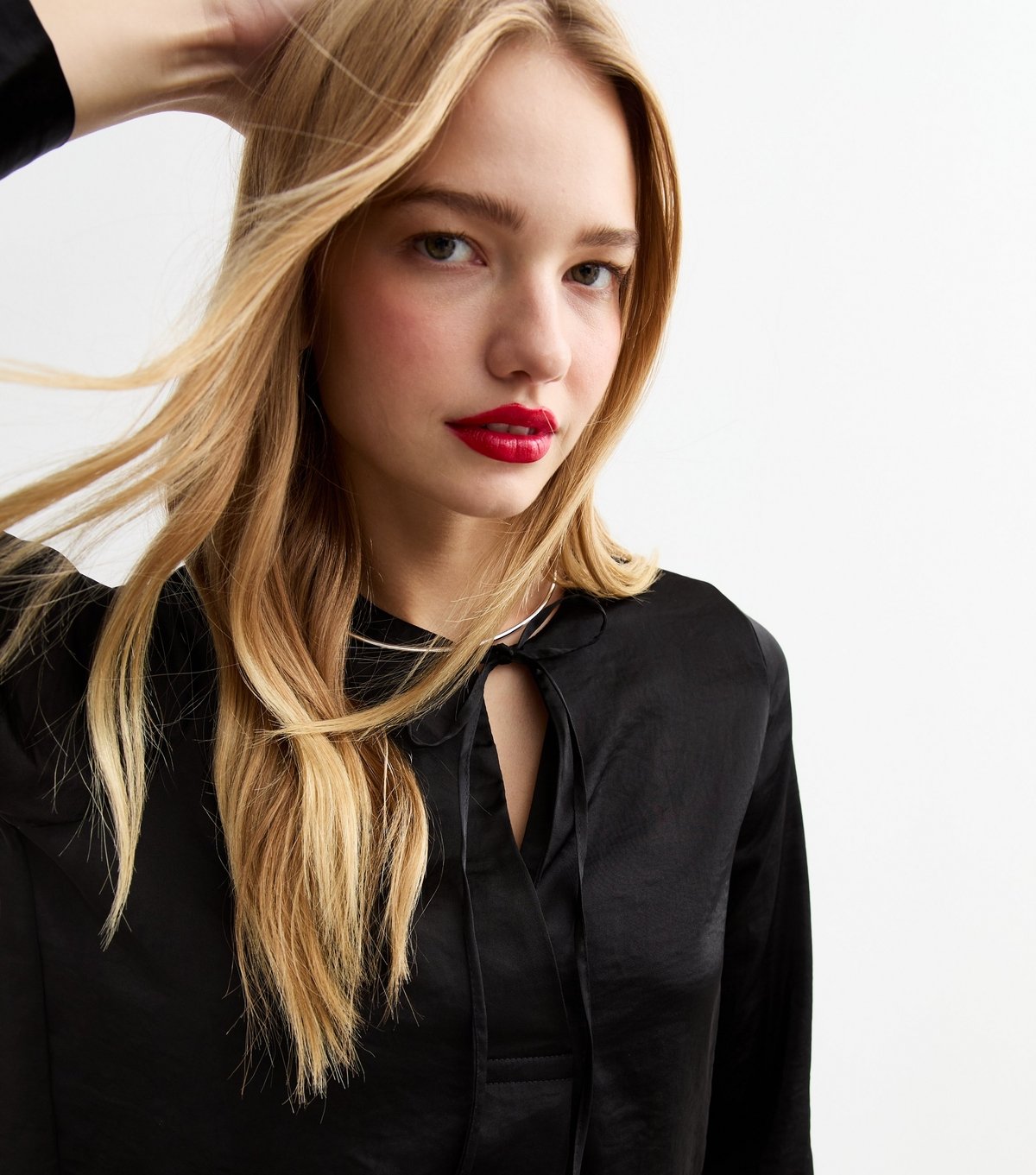 The New Look Black Satin V-Neck Tie-Front Top is made from satin.