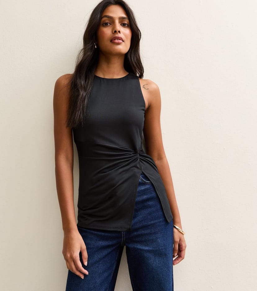 The New Look Black Jersey Twist Front Vest is ideal for casual, everyday.