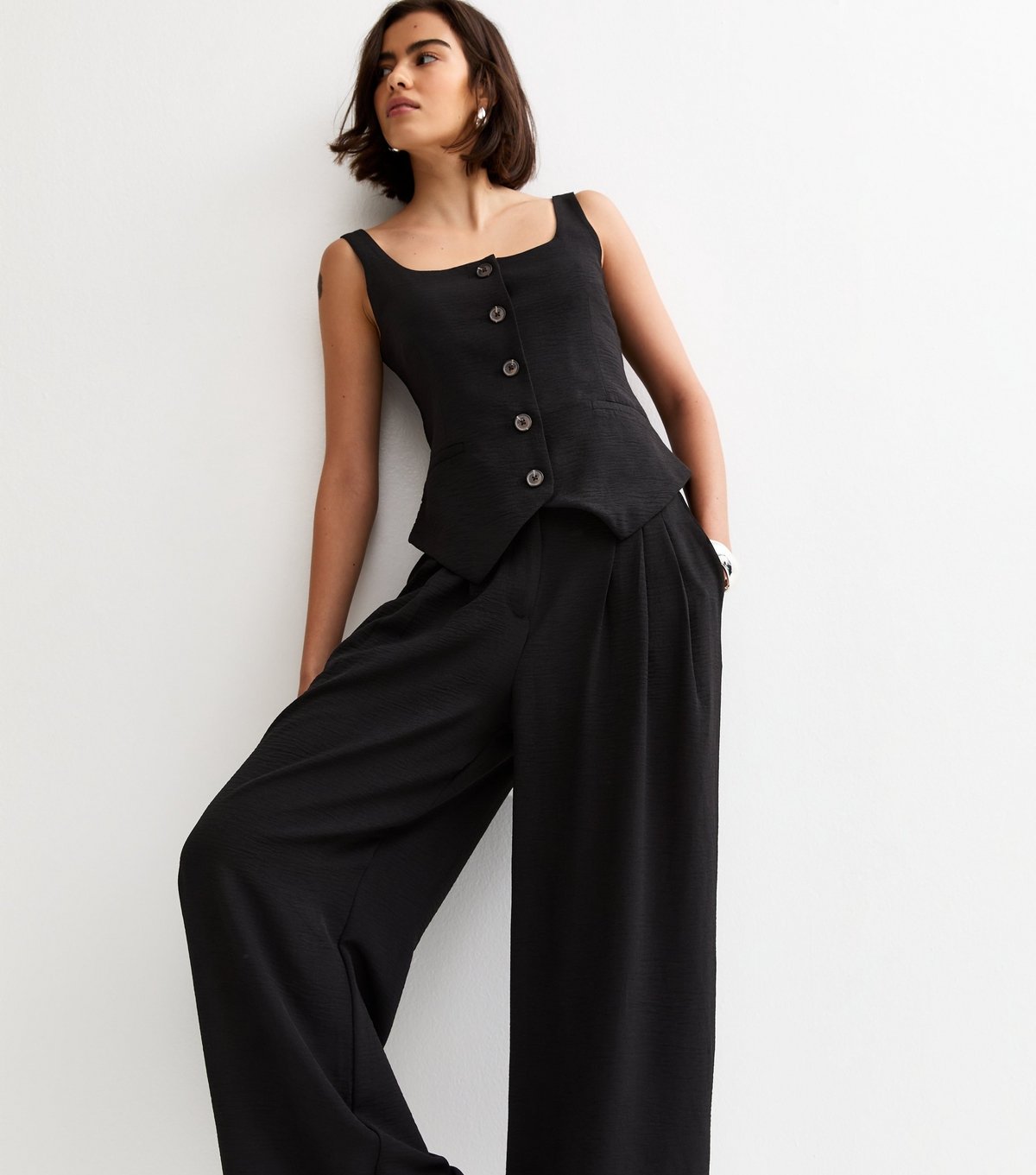 The New Look Black Wide Leg Pleated Trousers is made from woven.