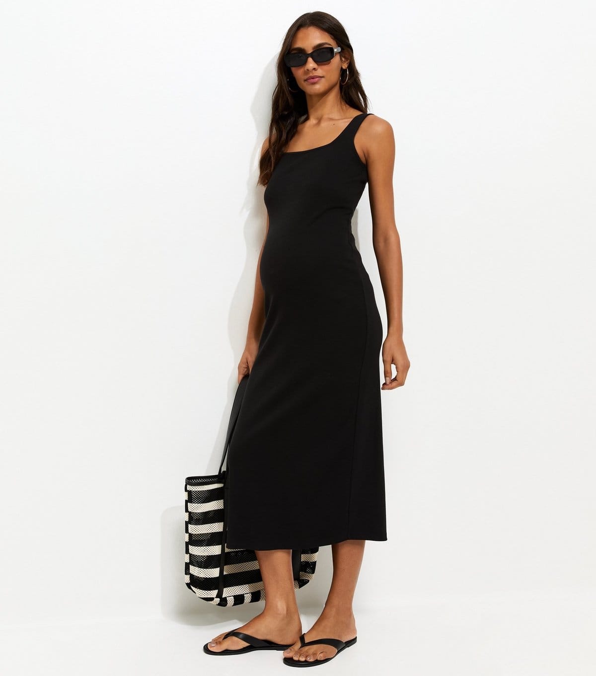 View New Look UK's returns policyA chic maternity midi dress in black with a square neckline and a back split for easy movement. Made from stretch jersey, it fits like a dream.