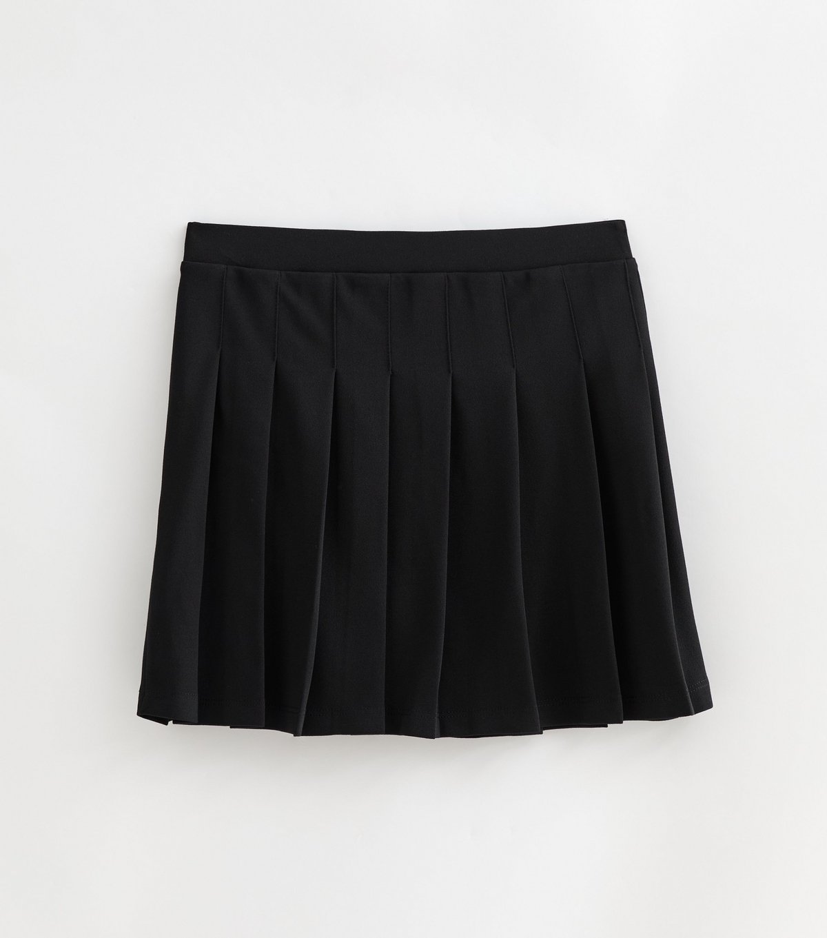 Stylish black crepe pleated mini skirt from New Look. Features a high-rise elasticated waist and a preppy pleated design. Ideal for casual outings and everyday wear.