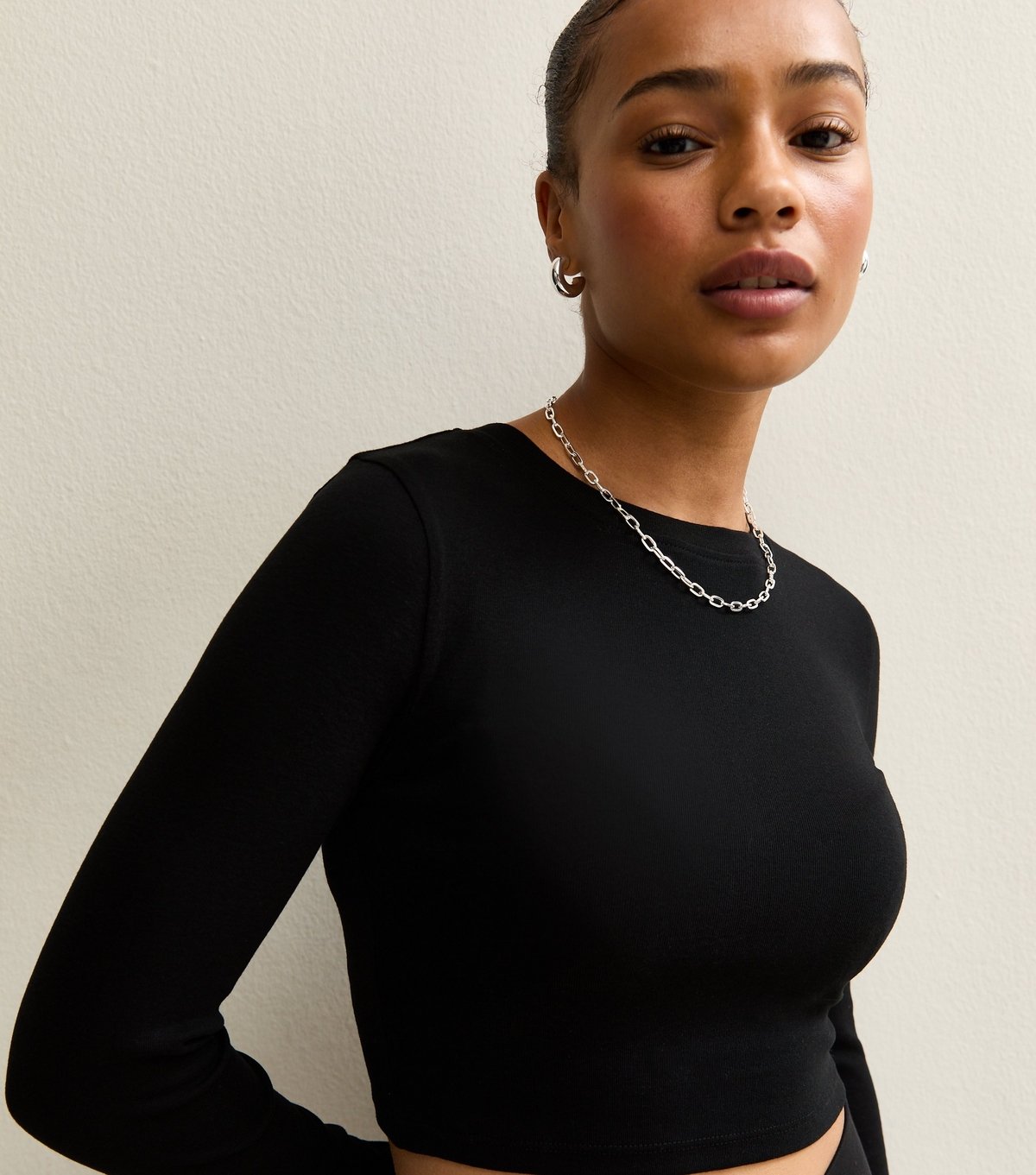 The New Look Black Stretch Jersey Long Sleeve Crop Top is made from jersey.